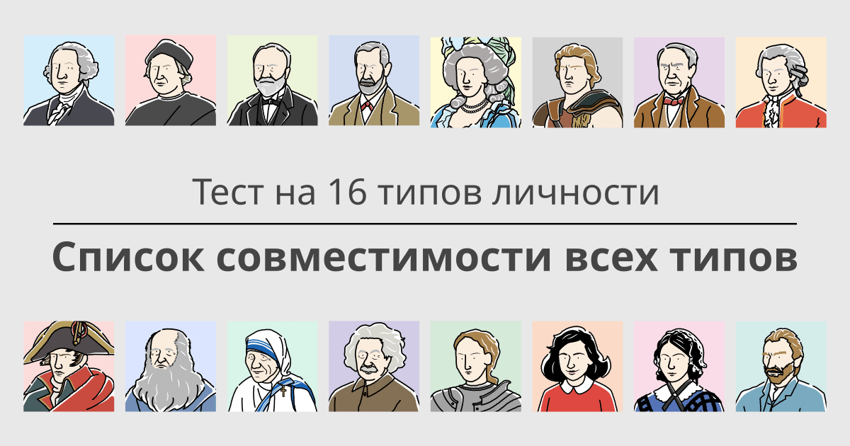Тест 16 Типов: Список Совместимости Всех Типов - Узнайте Совместимость в Любви и Работе (Последнее за 2025 год) Какие из 16 типов наиболее совместимы с вами? Эта статья объясняет совместимость между каждым из 16 типов личности на основе нашего теста. Совместимость разработана с использованием теории соционики и нашей уникальной логики.